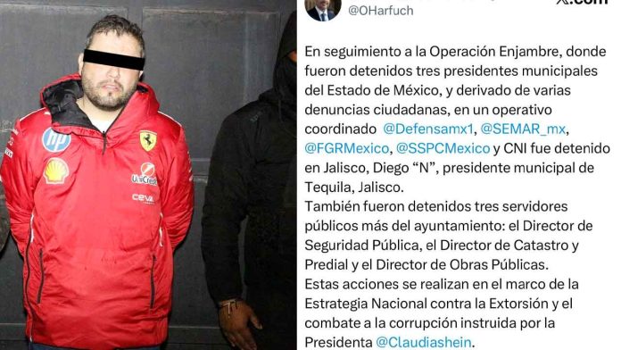 El secretario de Seguridad, Omar García Harfuch, informó de la captura de Diego ‘N’, en el marco de la Estrategia Nacional contra la Extorsión.