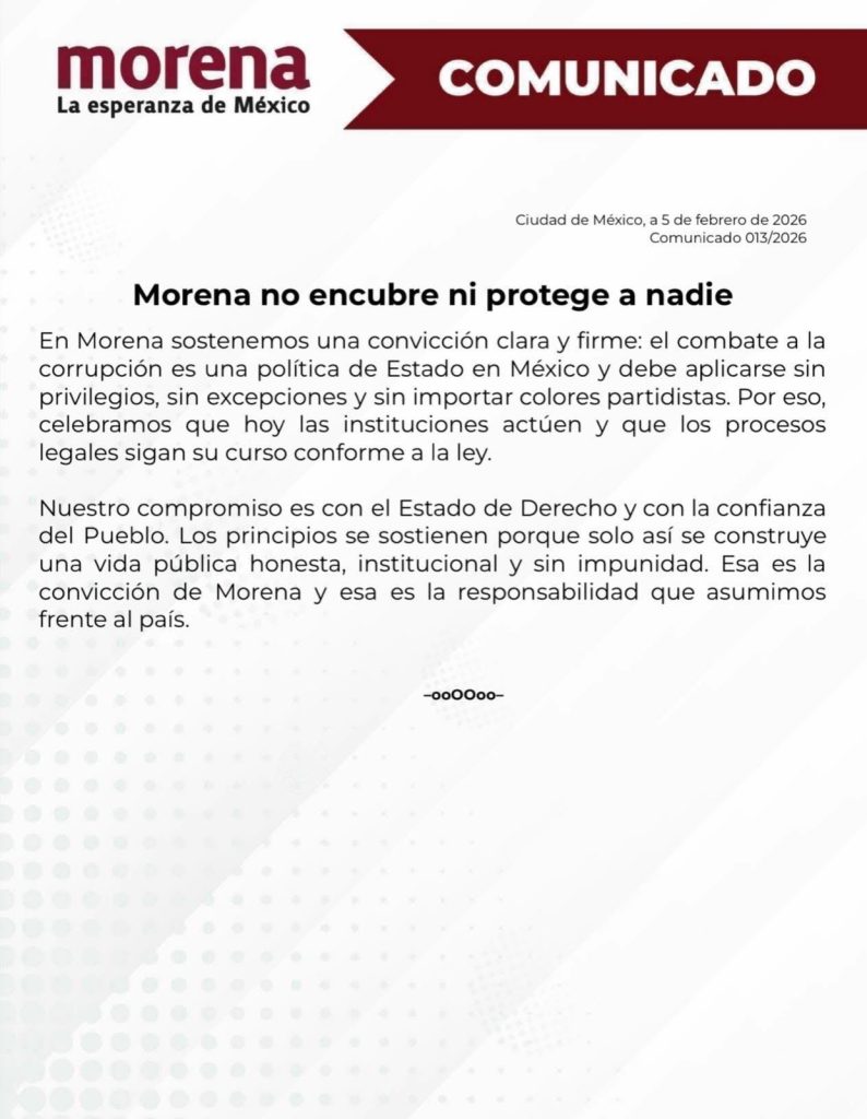 “Será la justicia, y solo la justicia, la que determine responsabilidades”, señaló Morena.