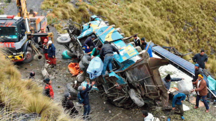 El accidente ocurrió durante la madrugada del jueves cuando el vehículo, que se dirigía hacia La Paz, perdió el control en una curva y cayó al vacío. El autobús quedó completamente destrozado, y las autoridades investigan si el exceso de velocidad pudo haber sido la causa del siniestro.