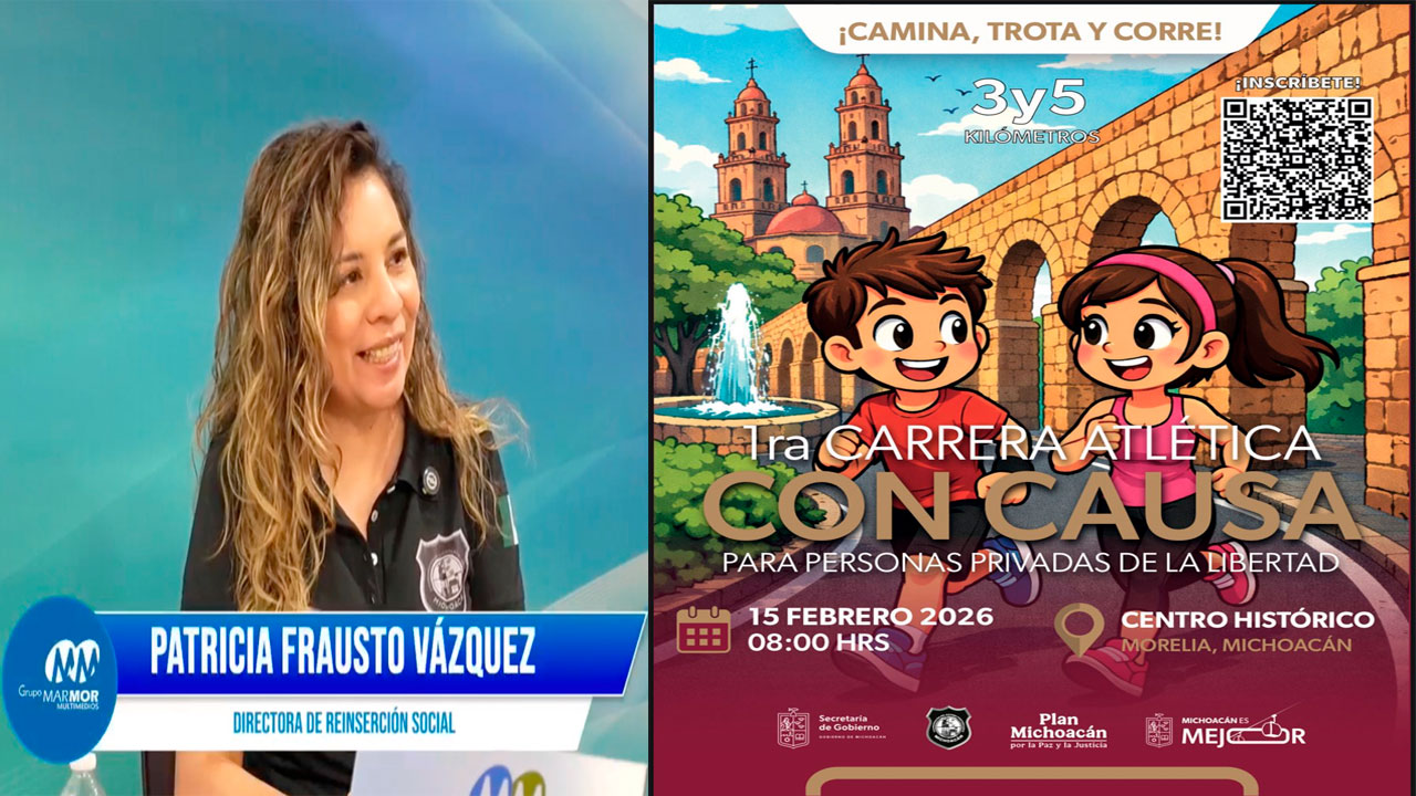 MORELIA, Mich.- La directora de Reinserción Social, Patricia Frausto Vázquez, convocó a la ciudadanía a participar en la primera carrera atlética con causa en beneficio de personas privadas de la libertad, que se llevará a cabo el próximo 15 de febrero en el Centro Histórico de Morelia.