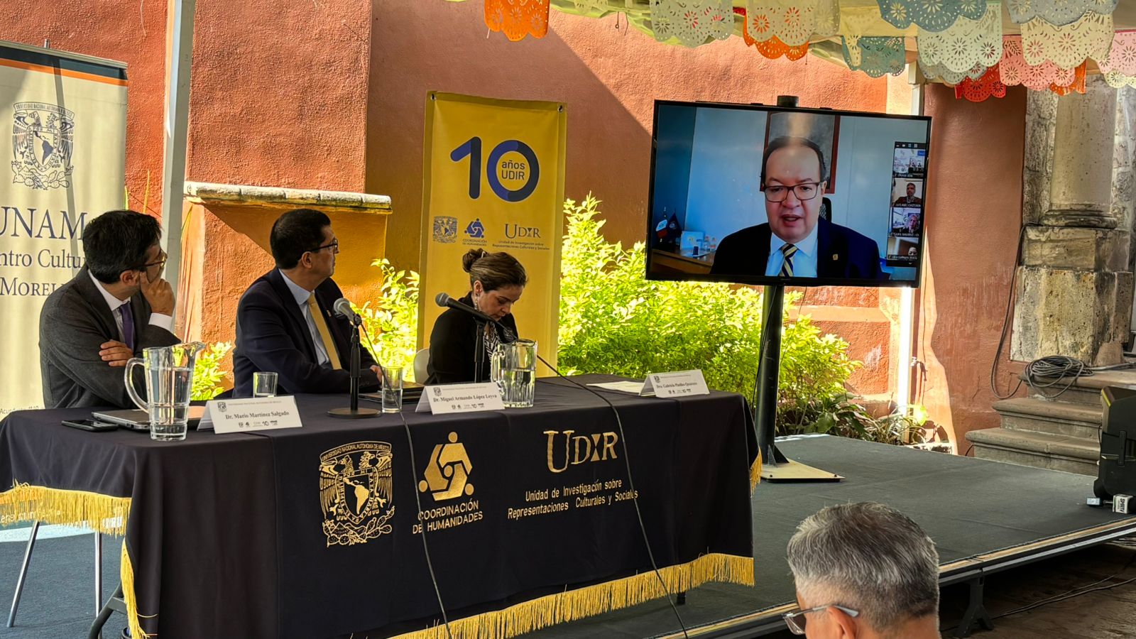 En el evento también participó el coordinador de la UDIR UNAM Morelia, Mario Martínez, quien dio la bienvenida a los asistentes. El mensaje inaugural estuvo a cargo del rector de la UNAM, Leonardo Lomelí Vanegas, quien reconoció los diez años de trabajo de la Unidad en el impulso a la investigación en ciencias sociales y humanidades.