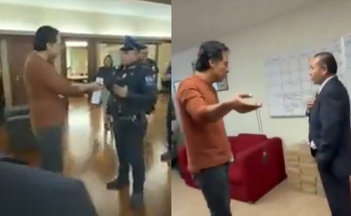 Arriaga convocó a una conferencia de prensa luego de que, según él, personal de seguridad ingresó a su espacio de trabajo acompañado de policías para retirarlo, situación que calificó como un acto de violencia institucional. En redes sociales difundió videos donde se le ve siendo escoltado fuera de las instalaciones.