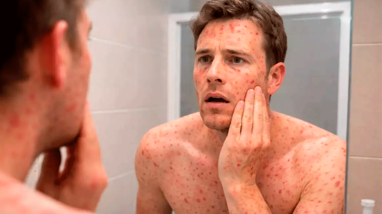 Tras la exposición al virus, los síntomas iniciales —como fiebre alta, tos, ojos rojos y secreción nasal— suelen aparecer entre 7 y 14 días después del contagio, seguidos por un sarpullido que puede durar 5 a 6 días y una fase total de enfermedad de 2 a 3 semanas dependiendo de la evolución del paciente.