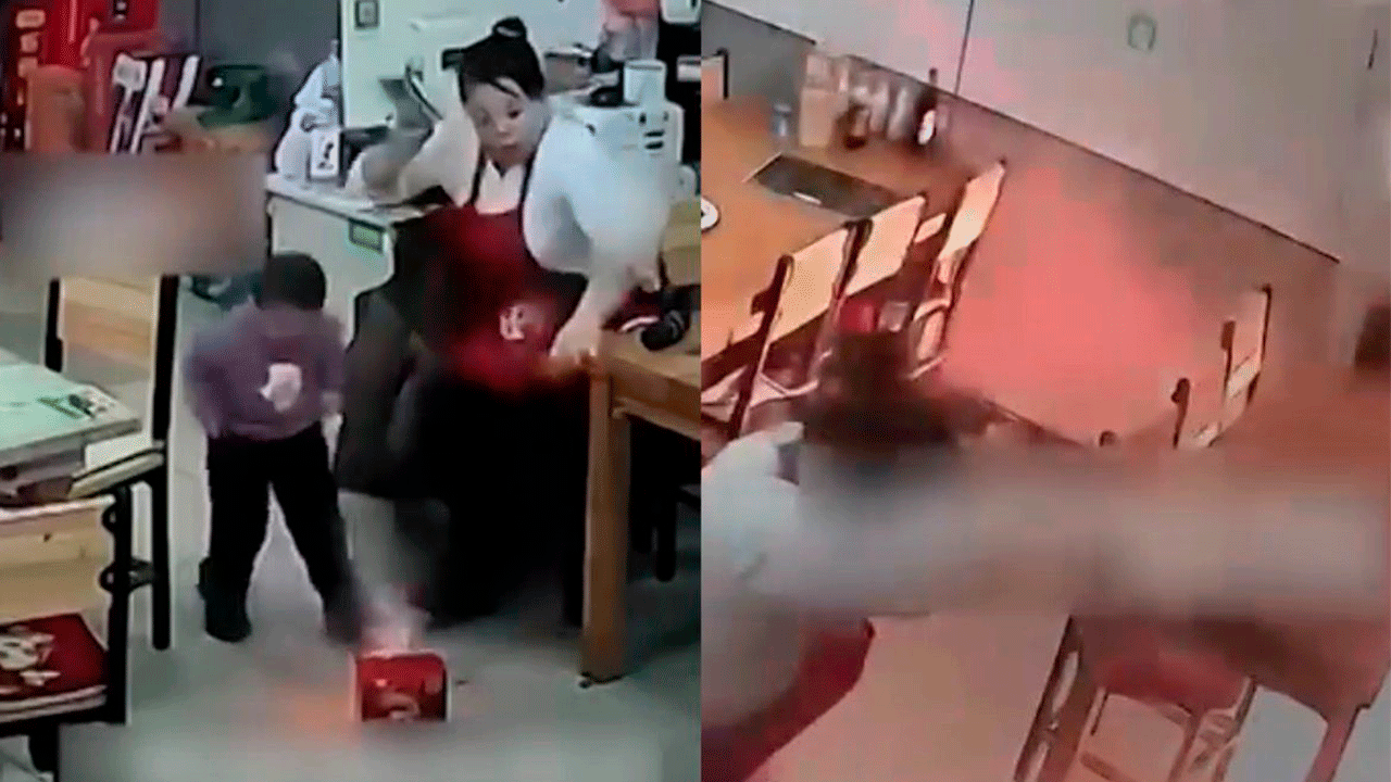 Un video viral muestra cómo un **menor de edad encendió accidentalmente una caja entera de **fuegos artificiales dentro del restaurante familiar en la provincia de Heilongjiang, China, lo que provocó momentos de nerviosismo entre los comensales y al personal del lugar. El incidente ocurrió el pasado 11 de febrero, cuando el niño estaba jugando sin supervisión estricta frente a su madre y, al prender la caja con un cerillo, activó varios de los pirotécnicos que generaron explosiones y destellos dentro del establecimiento.