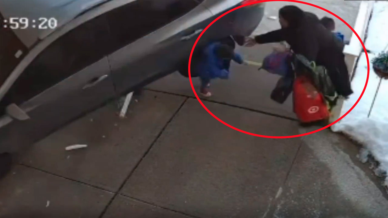 El captado de seguridad muestra cómo el SUV impacta primero una columna del acceso al jardín de infantes y posteriormente golpea a la familia, lo que provocó la rápida respuesta de personal y padres que ayudaron tras el choque.