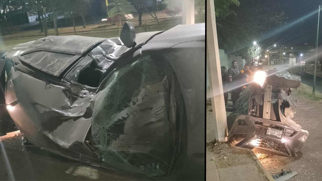 Se trató de un automóvil que presuntamente circulaba a una velocidad mayor a la permitida; salió intempestivamente de la carpeta asfáltica y terminó volcado y destrozado en una calle paralela.