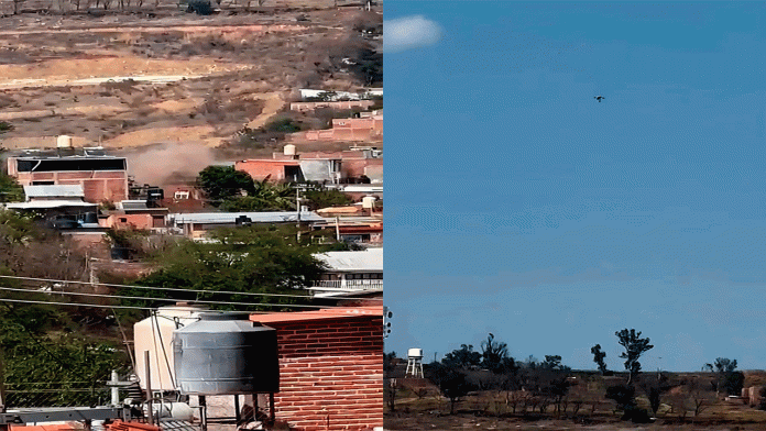 En medio de la violencia que se desató en varios estados del país con cierres de carreteras y quema de vehículos, tras el abatimiento de Nemesio Oseguera “El Mencho”, criminales del Cartel Jalisco Nueva Generación escondidos en cerros a las orillas de la cabecera municipal comenzaron una agresión con varios drones explosivos, los cuales cayeron en techumbres, calles y en plena plaza principal.
