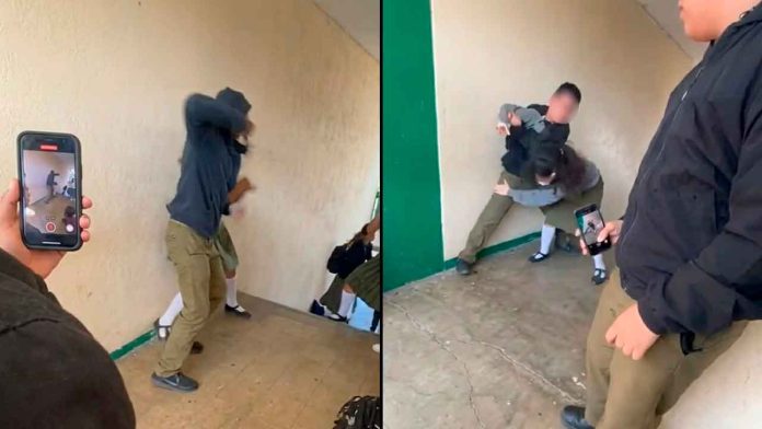 Un nuevo caso de violencia escolar ha causado indignación tras viralizarse varios videos donde se observa a un alumno de la Escuela Secundaria Técnica Industrial (ESTI) número 26, en el puerto de Veracruz, agrediendo físicamente a una de sus compañeras. En las imágenes se aprecia el momento en que el joven le propina varios golpes a la menor dentro del plantel educativo, mientras otros estudiantes presencian la escena sin intervenir inicialmente, lo que ha desatado una ola de críticas en redes sociales.