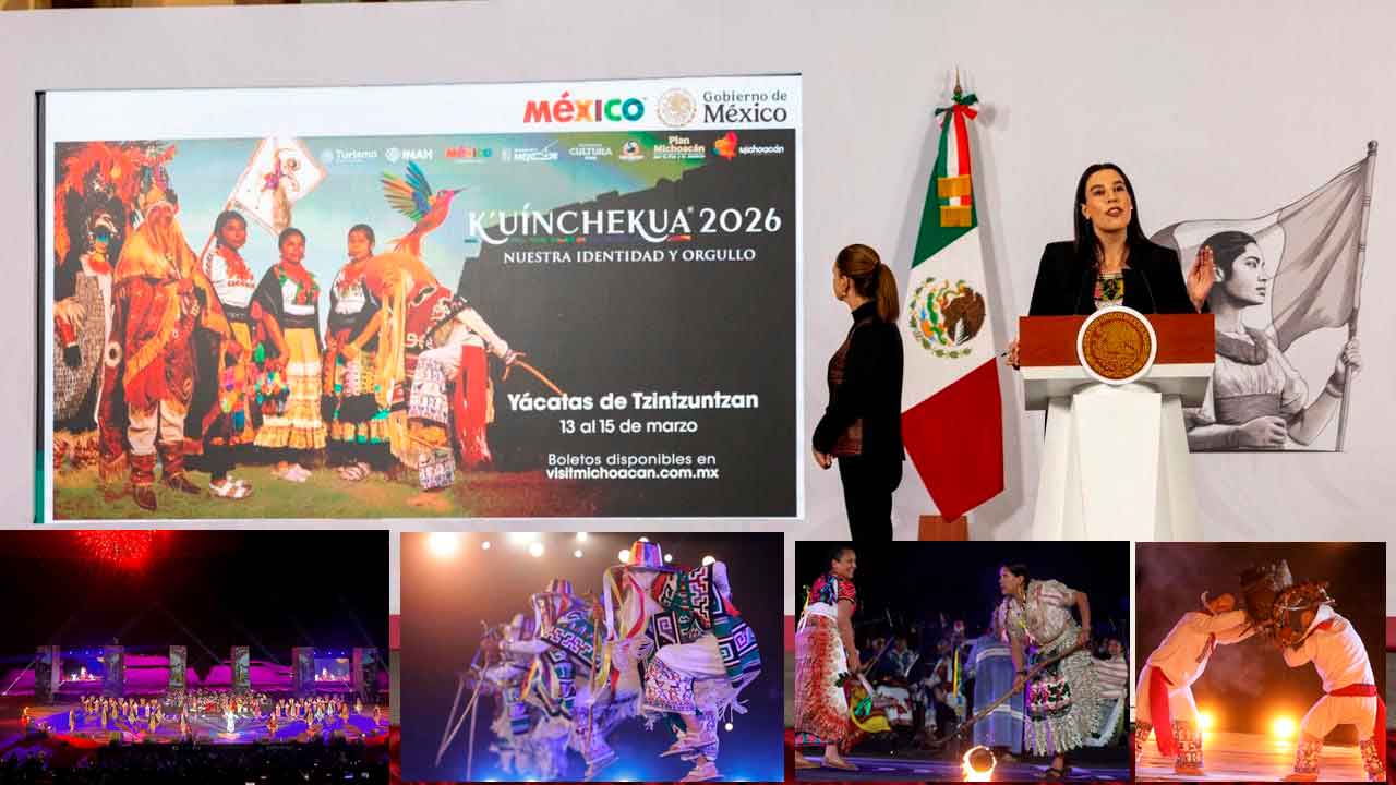 Ciudad de México, 27 de febrero de 2026.- Con el respaldo de la presidenta de México, Claudia Sheinbaum Pardo, este día se presentó a nivel nacional la edición 2026 de la K’uínchekua, encuentro donde las portadoras y portadores de las tradiciones mostrarán la riqueza de Michoacán, del 13 al 15 de marzo en las Yácatas de Tzintzuntzan.