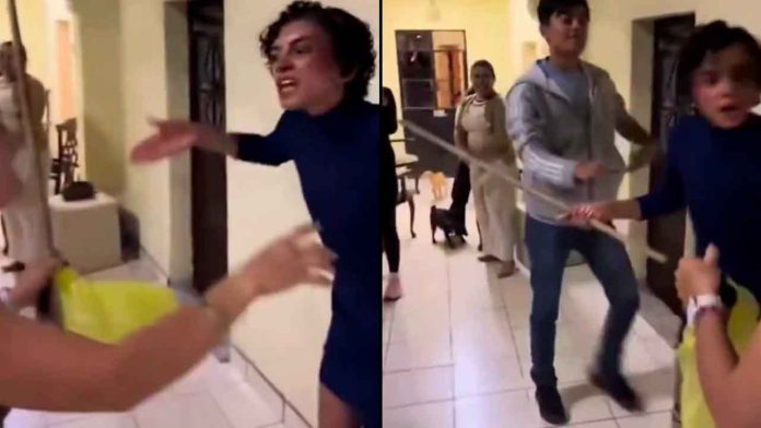 El impacto desató la furia inmediata de la joven creadora de contenido, quien reaccionó de manera explosiva y agredió a su madre físicamente. En las imágenes que circulan en redes sociales se observa cómo Melany se va encima de ella entre jalones, reclamos y manotazos frente a la mirada atónita de los invitados, cambiando por completo el ambiente de celebración a uno de tensión total en cuestión de segundos.