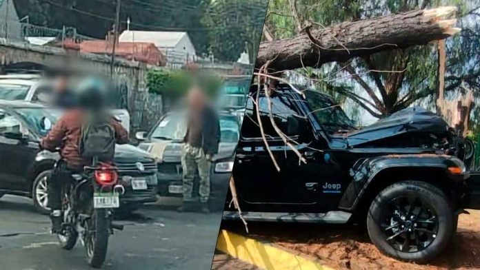 El segundo incidente sucedió en las cercanías de la Glorieta Juan Pablo II, en la zona de Altozano. En el sitio se observó que una camioneta Jeep, color negro, se salió de control, trepó al camellón central y derribó un árbol; el conductor resultó levemente lesionado.