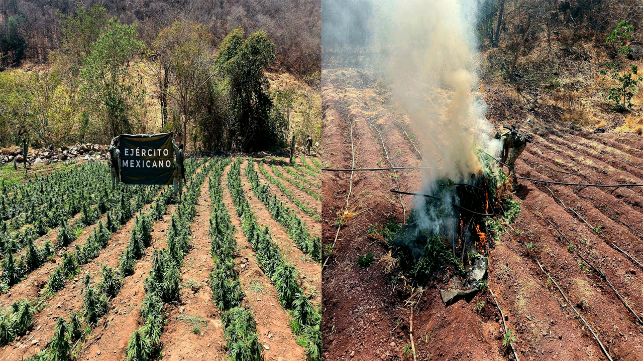 De acuerdo con fuentes castrenses, los militares ubicaron las áreas de cultivo de droga en las inmediaciones de la comunidad de Palo Seco, en una zona serrana del municipio.