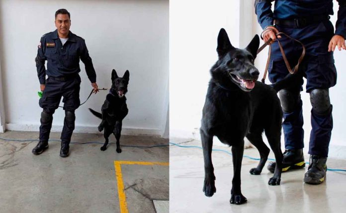 Durante la emergencia en San Antonio Abad, Togo trabajó junto a su manejador, el bombero Donovan Millán, ayudando a orientar a los equipos de rescate para concentrar los esfuerzos en puntos específicos entre el concreto y los escombros.