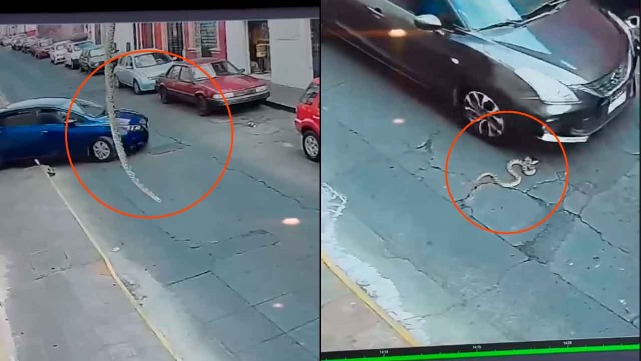 El incidente fue documentado por cámaras de videovigilancia instaladas en el sector. En las grabaciones, que rápidamente comenzaron a circular, es posible observar el instante preciso en el que el espécimen desciende desde las alturas, impactando a escasa distancia de un vehículo en movimiento. Tras la caída, el reptil sobrevive al golpe, permanece unos segundos en el pavimento y posteriormente comienza a desplazarse en medio del flujo vehicular habitual del Centro Histórico.