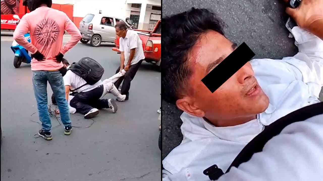 De acuerdo con el material audiovisual difundido en redes sociales, el delincuente se acercó sigilosamente por la espalda al adulto mayor y comenzó a estrangularlo con las manos, presuntamente con la intención de dejarlo inconsciente para despojarlo de sus pertenencias. Sin embargo, transeúntes que se percataron de la agresión reaccionaron de inmediato.