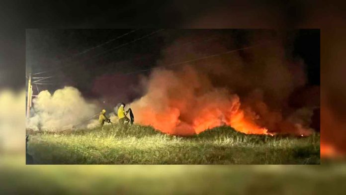 Morelia, Mich.- Viernes 13 de marzo de 2026.- La noche de ayer jueves, el sistema de videovigilancia del C5i captó una densa columna de humo blanco al norte de la ciudad de Morelia. Se trató de un incendio de pastizal en un predio, siniestro que fue combatido por los bomberos municipales.