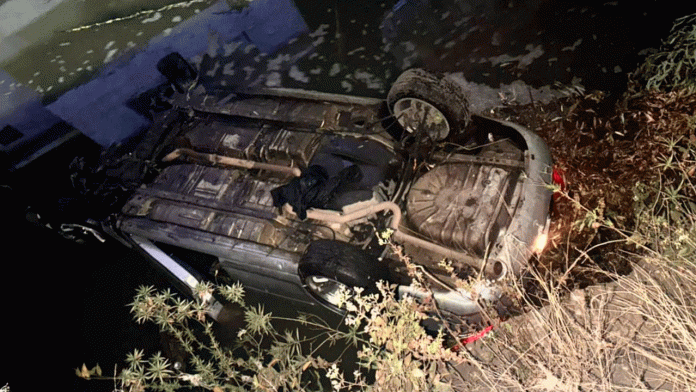 Morelia, Mich.- Sábado 14 de marzo de 2026.- Un joven resultó prácticamente ileso tras caer con su automóvil a un canal de aguas negras ubicado a la orilla del Libramiento Sur de Morelia, cerca de Casa Michoacán, indicaron fuentes policiales.