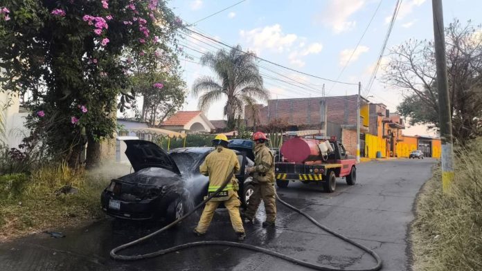 Minutos más tarde arribó personal de Bomberos Purépechas, quienes encontraron el automóvil envuelto en fuego, por lo que de inmediato iniciaron las maniobras para controlar y extinguir el incendio.
