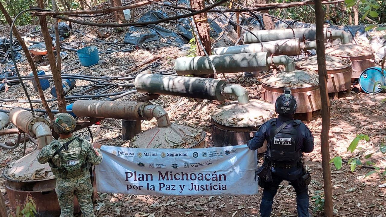 Arteaga, Michoacán, 15 de marzo de 2026.- En una acción operativa interinstitucional en el municipio de Arteaga, la Secretaría de Seguridad Pública (SSP) y el Ejército Mexicano desmantelaron un laboratorio clandestino en la localidad de La Placita. En el sitio, presuntamente utilizado para elaborar drogas sintéticas, se aseguraron reactores industriales, contenedores de químicos, tanques de gas y equipo especializado para la producción de narcóticos.