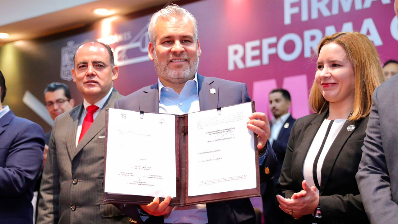 Morelia, Michoacán, 16 de marzo de 2026.- El gobernador Alfredo Ramírez Bedolla, firmó el decreto de la reforma constitucional “No más deuda en Michoacán”, aprobada por las y los legisladores de los distintos partidos políticos del Congreso local, mismo que entra en vigor tras su publicación en el Periódico Oficial del Estado.