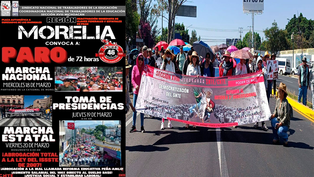 La Coordinadora Nacional de Trabajadores de la Educación (CNTE) Sección XVIII, anuncio mediante una circular informativa que habra paro de brazos caídos de 72 horas en Morelia durante los próximos tres días.
