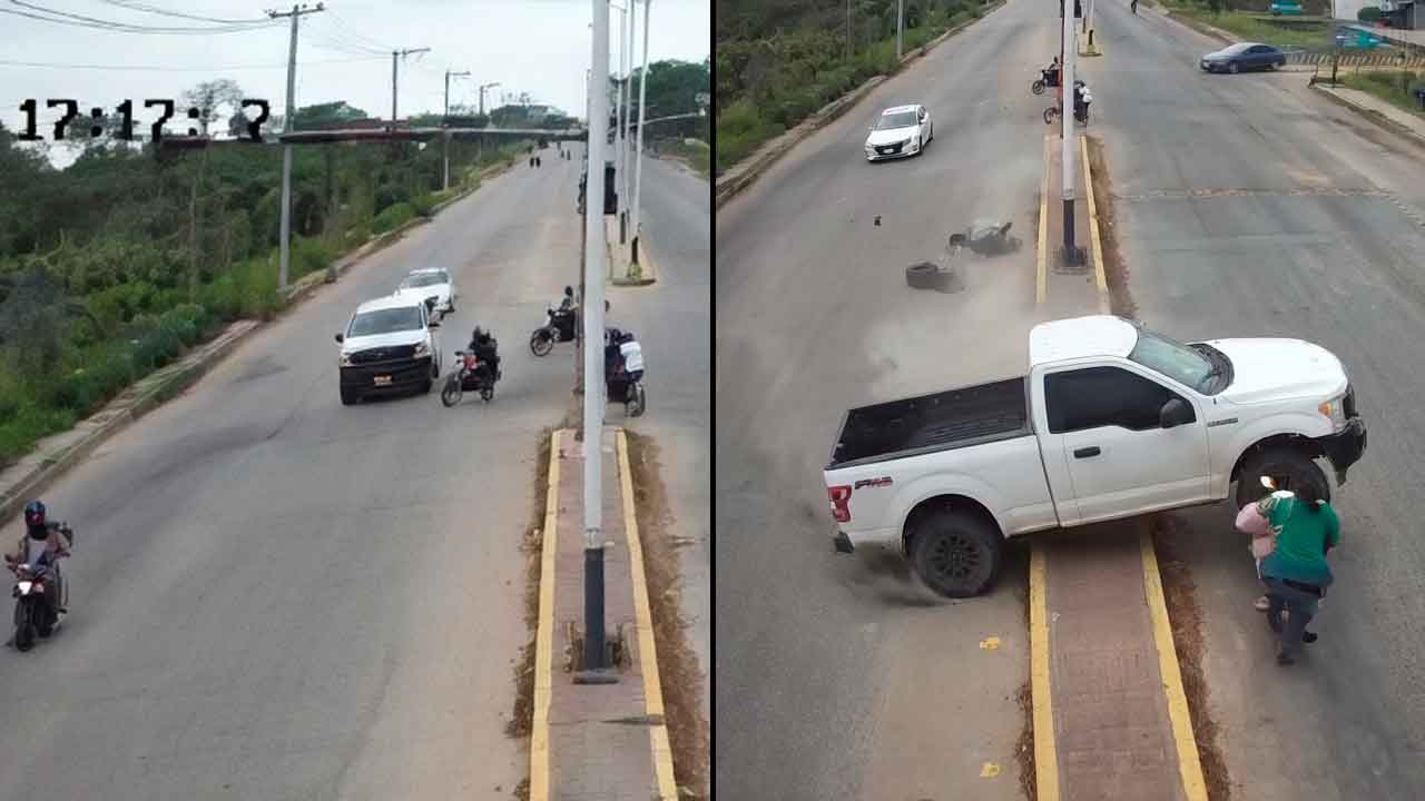 De acuerdo con las imágenes captadas por una cámara de seguridad, la tragedia se desencadenó por una maniobra evasiva a alta velocidad. En la grabación se observa cómo el conductor de una camioneta tipo pick-up intenta esquivar de último momento a un motociclista que se encontraba cruzando la vía de manera imprudente.
