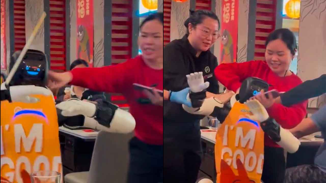 Ante la mirada atónita y las risas de los comensales, los trabajadores del lugar tuvieron que intervenir rápidamente. Los empleados tuvieron que maniobrar y batallar por varios instantes para lograr acorralar, restringir y finalmente apagar a la máquina, tratando de evitar a toda costa que chocara contra el mobiliario o tirara los alimentos.
