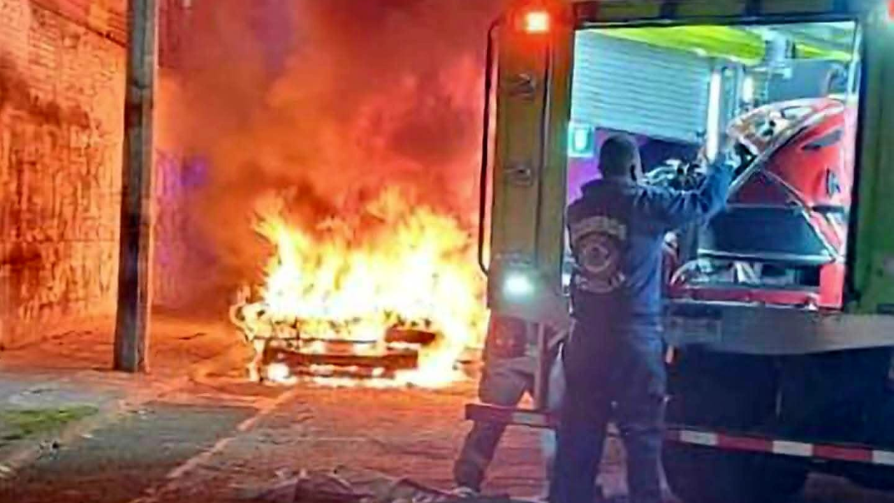 Algunos vecinos de la calle Paseo del Nogal detectaron la unidad motriz incendiada, casi en la esquina con Paseo de Las Galeanas, por lo que de inmediato solicitaron ayuda al servicio de emergencias.
