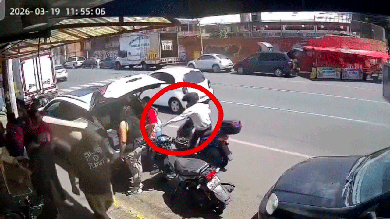 Un robo fue captado por cámaras de seguridad en calles de Tlalnepantla, Estado de México, donde un motociclista le arrebató el celular a una mujer mientras trabajaba, generando indignación en redes sociales.