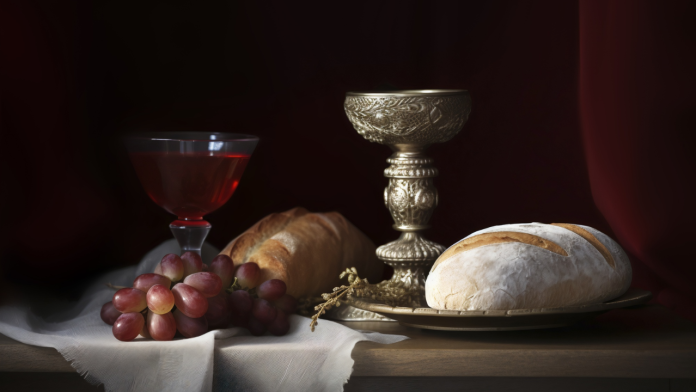 Desde la perspectiva de la Iglesia Católica, basada en el Catecismo de la Iglesia Católica, la Última Cena es considerada la institución de la Eucaristía y el origen de la misa. Ahí, Jesús toma el pan y el vino y los presenta como su cuerpo y su sangre, estableciendo un nuevo rito con sus seguidores, lo que convierte este momento en la comunión y centro de la vida cristiana.