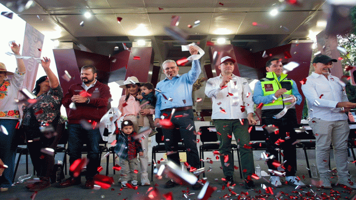 Uruapan, Michoacán, 28 de marzo de 2026.- El gobernador Alfredo Ramírez Bedolla cumplió con el pueblo de Uruapan al inaugurar el paso superior vehicular Carlos Manzo, en la zona conocida como “La Hielera”, una obra que transforma y moderniza a la ciudad económicamente más importante de Michoacán, con una inversión estatal de 381 millones de pesos, sin contratar deuda pública.