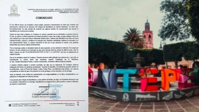 El presidente municipal de Contepec, Eduardo Martínez Guzmán ha emitido un comunicado en respuesta al video del baile de los alumnos del Colegio de Bachilleres que ha generado polémica en redes sociales señalando que no permitirá se criminalice a los jóvenes de dicha zona.