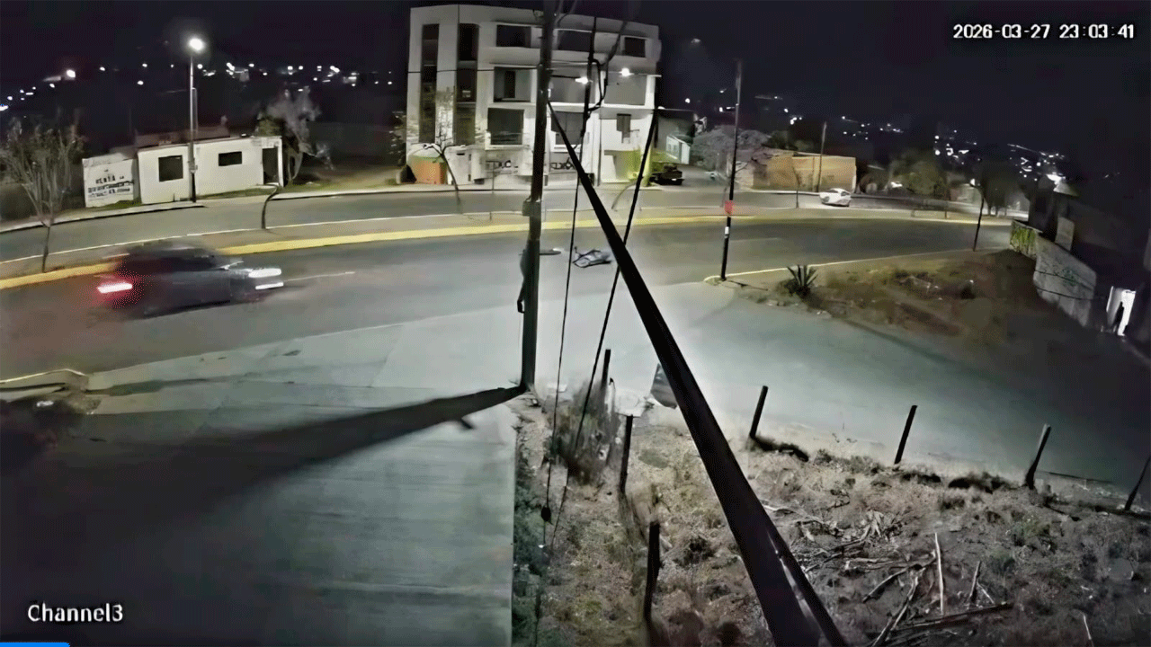 Morelia, Mich.- Sábado 28 de marzo de 2026.- El motociclista que murió durante la última hora de ayer viernes primero derrapó tras pasar, presumiblemente a alta velocidad, un tope localizado en la avenida Amalia Solórzano, al norte de Morelia, y acto seguido fue arrollado por un automóvil, el cual también circulaba a una velocidad mayor a la permitida, de acuerdo con imágenes captadas por una cámara de videovigilancia.