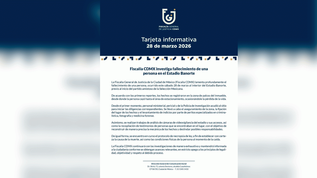 La Fiscalía General de Justicia de la Ciudad de México mantiene abierta la investigación para esclarecer los hechos.