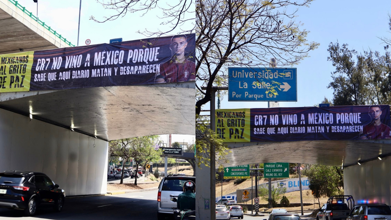 El mensaje hace referencia directa al futbolista Cristiano Ronaldo, señalando que su ausencia en territorio mexicano estaría relacionada con los niveles de inseguridad. En el texto se lee: “CR7 no vino a México porque sabe que aquí diario matan y desaparecen”.