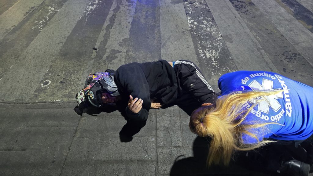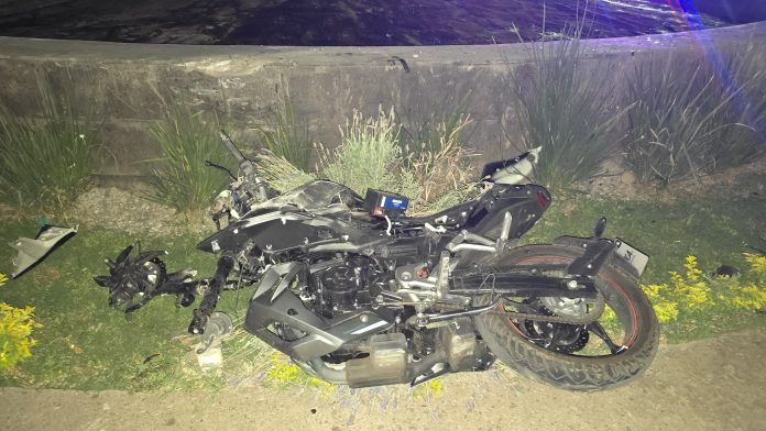 Zamora, Mich.- 29 de marzo de 2026.- Dos empelados de una bodega de semillas y cereales del mercado de abastos de la comunidad de Canindo resultaron lesionados al salir disparados tras chocar su motocicleta contra una glorieta, en este municipio de Zamora.