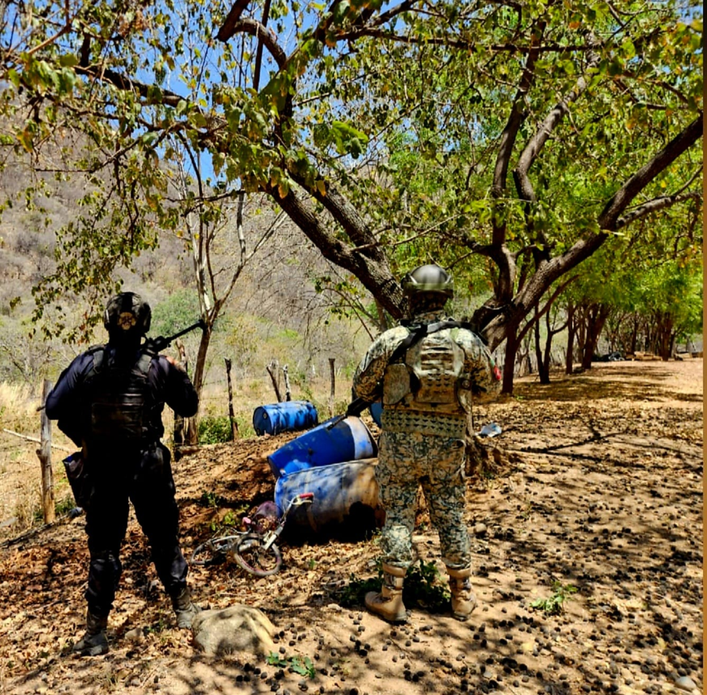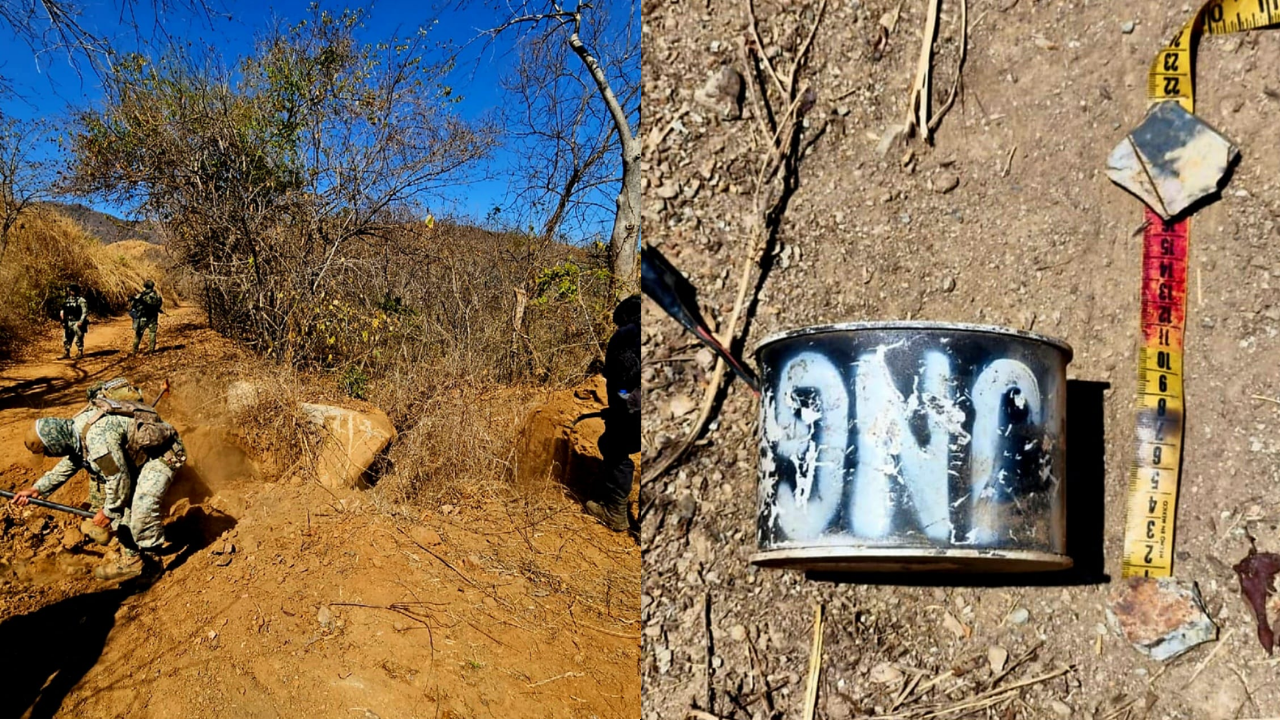 En el área fueron ubicados un total de 4 artefactos cilíndricos, algunos de ellos con las siglas CJNG, por lo que se solicitó la intervención de personal especializado para realizar su destrucción controlada.