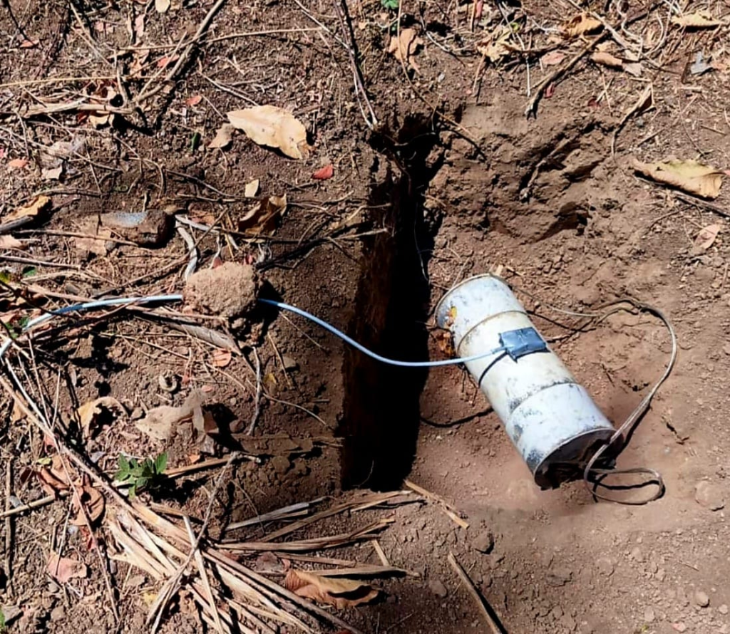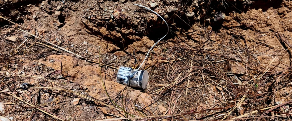 Durante patrullajes por brechas del municipio de Apatzingán, oficiales de las Secretarias de Seguridad Pública y de la Defensa Nacional, localizaron y destruyeron 4 artefactos improvisados tipo mina.