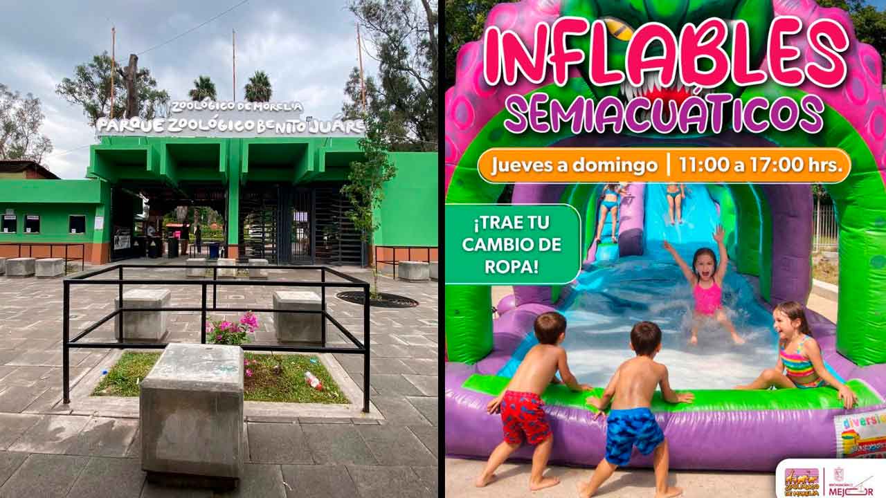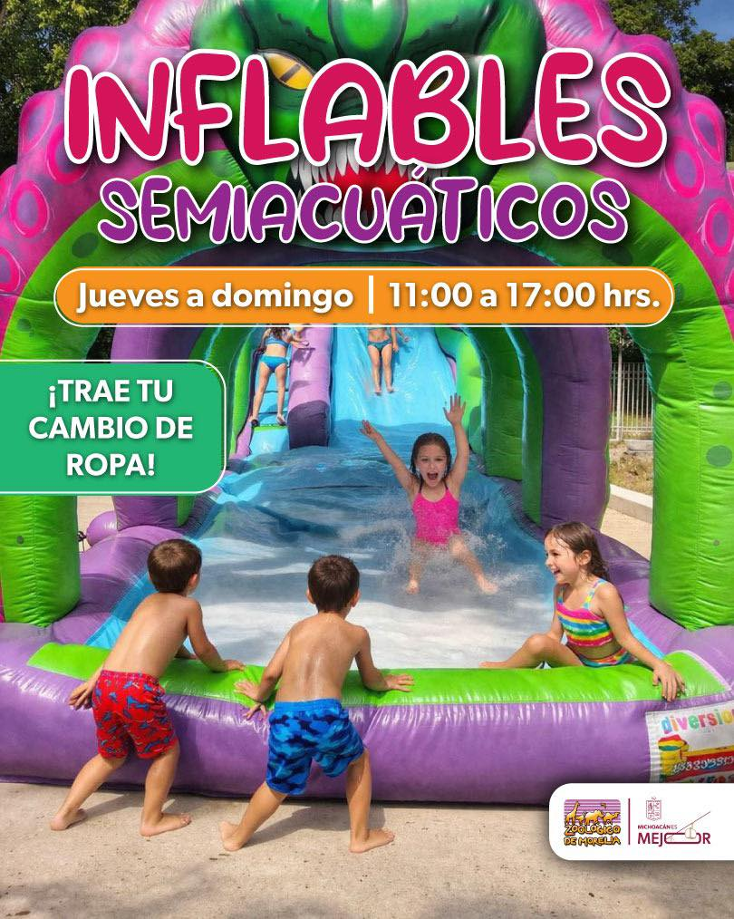 Con motivo del periodo vacacional de Semana Santa, el Zoológico de Morelia habilitó un nuevo espacio recreativo con inflables semiacuáticos en el Jardín Cabús, dirigido principalmente al público infantil.