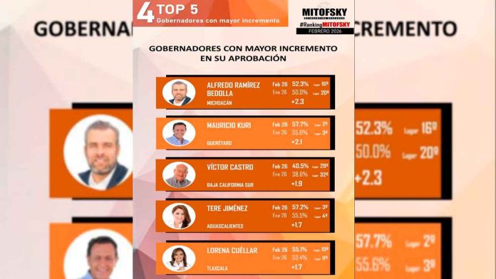 Con este desempeño, el mandatario michoacano se posiciona dentro del grupo selecto de los cinco gobernantes que registraron las alzas más significativas en todo el país durante el primer bimestre del año.