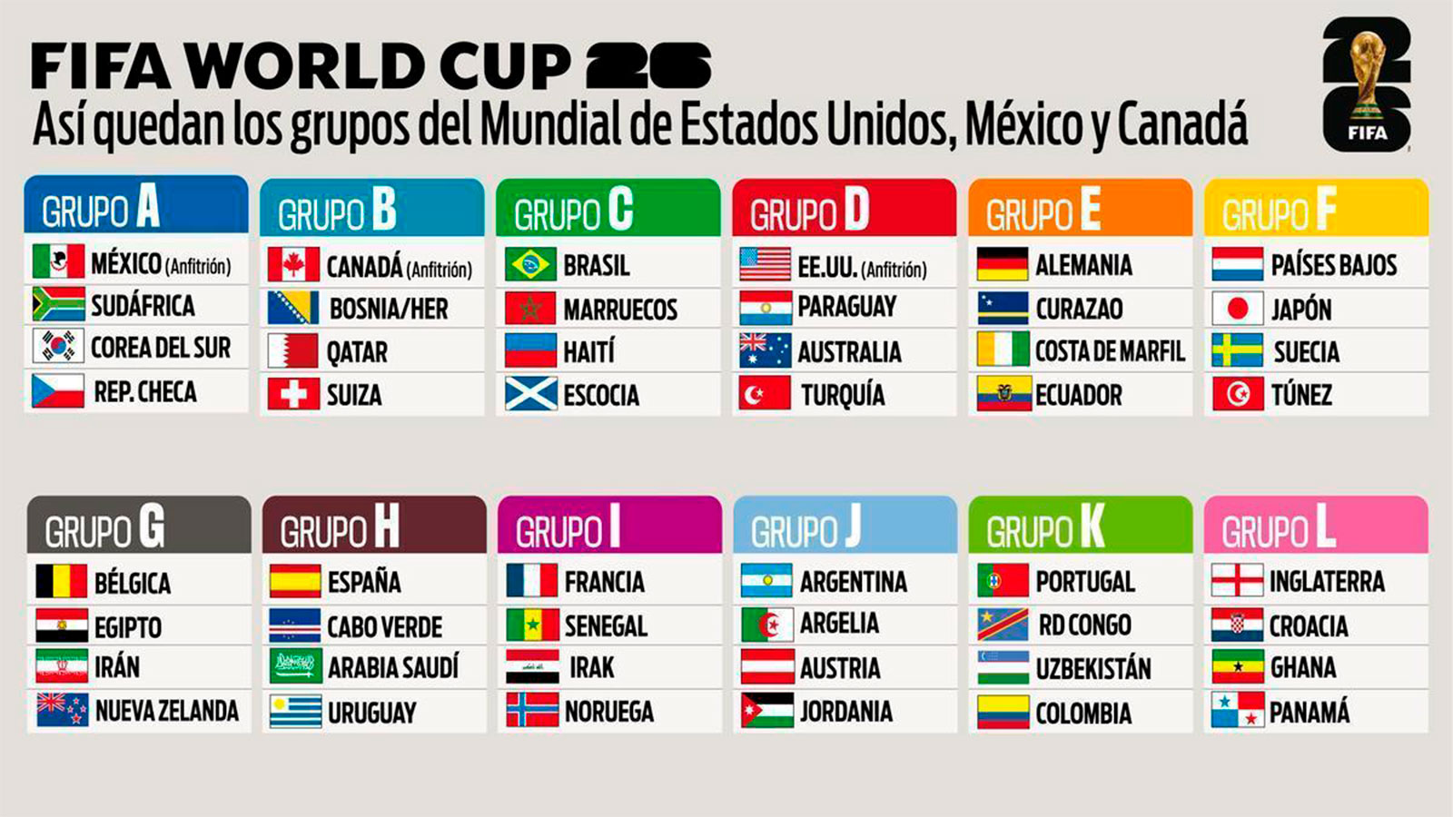 La edición de 2026 será la primera con 48 equipos, lo que aumentará la competitividad y abrirá la puerta a nuevas historias y sorpresas en el escenario internacional. Con la lista completa definida, las selecciones comienzan ahora la cuenta regresiva rumbo a una Copa del Mundo que promete ser histórica en todos los sentidos.