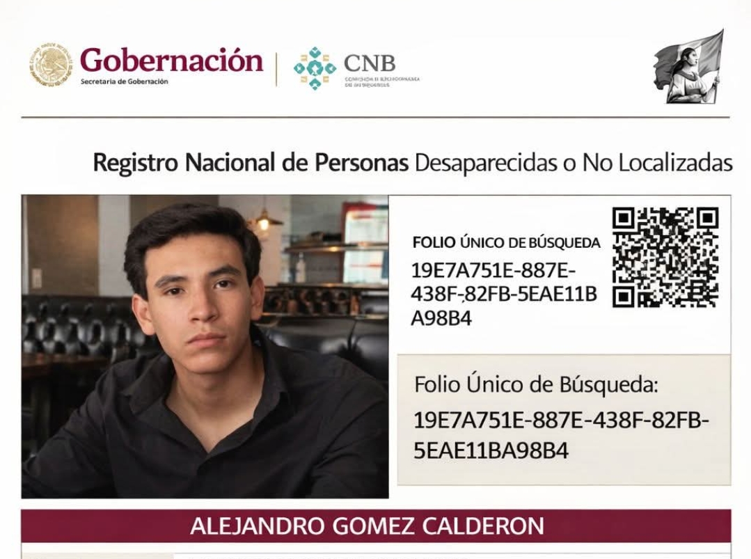 Alejandro Gómez Calderón, de 18 años, fue reportado como desaparecido el 1 de abril de 2026 en la colonia San Antonio Parangaré, ubicada en el municipio de Morelia.