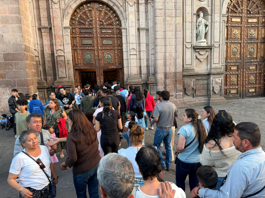 Morelia, Michoacán; a 2 de abril de 2026.-Miles de creyentes se dieron cita a la tarde de este jueves, en las inmediaciones de la capital michoacana, precisamente en el primer cuadro de la ciudad, para llevar a cabo la tradicional visita a los siete templos, la cual contó con una gran afluencia de personas en los siete recintos sagrados.