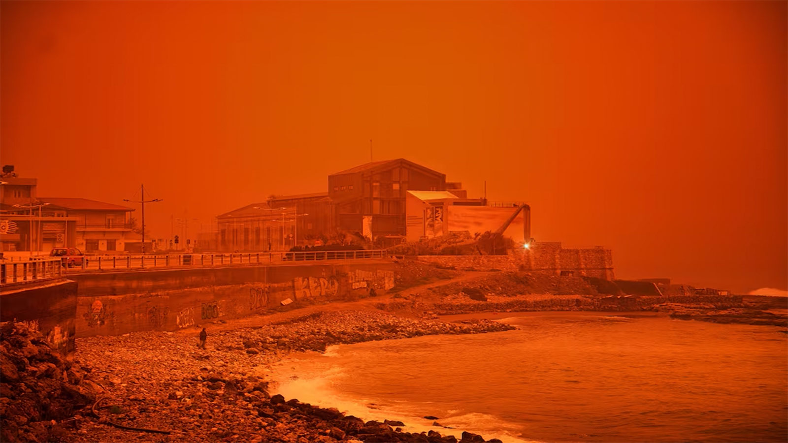 Una inusual nube de polvo anaranjado cubrió la isla de Creta, en Grecia, debido a un fenómeno atmosférico provocado por fuertes vientos que transportaron arena desde el Desierto del Sahara.
