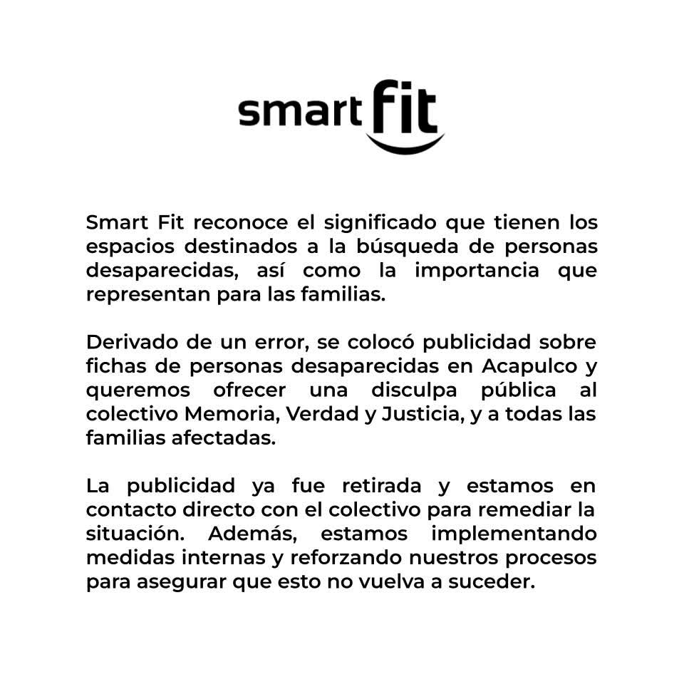 La cadena de gimnasios Smart Fit generó indignación en Acapulco tras colocar publicidad tapando fichas de personas desaparecidas en los postes, denunciaron madres buscadoras y colectivos locales.