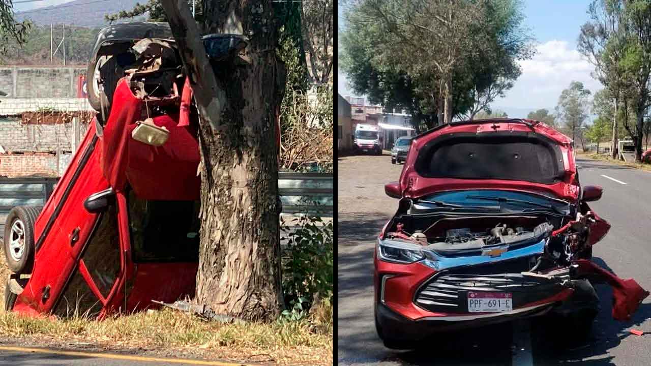 El primer percance ocurrió sobre la carretera Morelia-Pátzcuaro, en el sentido hacia la capital michoacana, a la altura de Uruapilla. Se trató de un choque por alcance entre camionetas Chevrolet Tracker; una de ellas, tras el impacto, se salió de la carpeta asfáltica, cayó a una cuneta central y se estrelló contra un árbol.