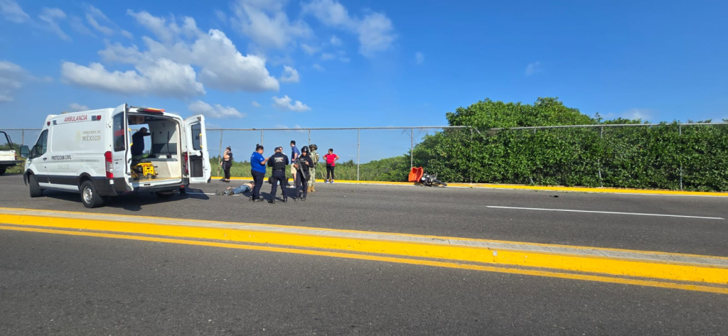 Los hechos ocurrieron el nuevo acceso al Boulevard Playero Bicentenario, donde el motorista, identificado como Omar R. C. de 30 años de edad, aparentemente perdió el control de su unidad al tomar la curva, lo que ocasionó que cayera aparatosamente.