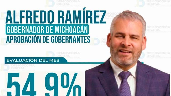 Morelia, Michoacán, 4 de abril de 2026.- El respaldo ciudadano hacia el gobernador de Michoacán, Alfredo Ramírez Bedolla, registró un crecimiento significativo durante el mes de marzo de 2026. De acuerdo con el más reciente Ranking de Gobernadores de la encuestadora Demoscopia Digital, el mandatario estatal logró un incremento de 3.8 puntos porcentuales en su nivel de aprobación.