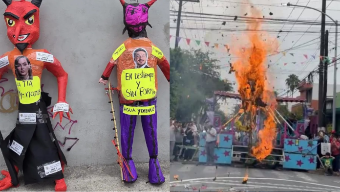 Esto sucedió en en la Colonia Obrerista de Monterrey durante este Sábado de Gloria, cientos de vecinos se reunieron para presenciar la quema de figuras de cartón que representaban al Gobernador del Nuevo León, Samuel García, y a su esposa, Mariana Rodríguez, señalándolos como los “traidores” de la sociedad actual.