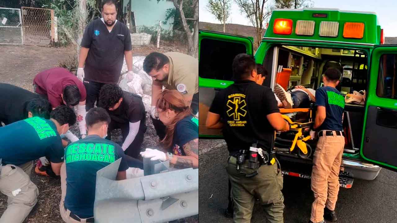Paramédicos de Protección Civil Municipal de Jacona y Rescate Zamora se trasladaron y auxiliaron a Jennifer R., de 20 años, misma que presenta fractura expuesta en el húmero derecho y posible trauma en cráneo, así como a Jocelin R., de 16 años de edad y al menor Michel T., R., de 2 años, quien presenta amputación del brazo derecho, por lo que fueron canalizados a un hospital de Zamora.